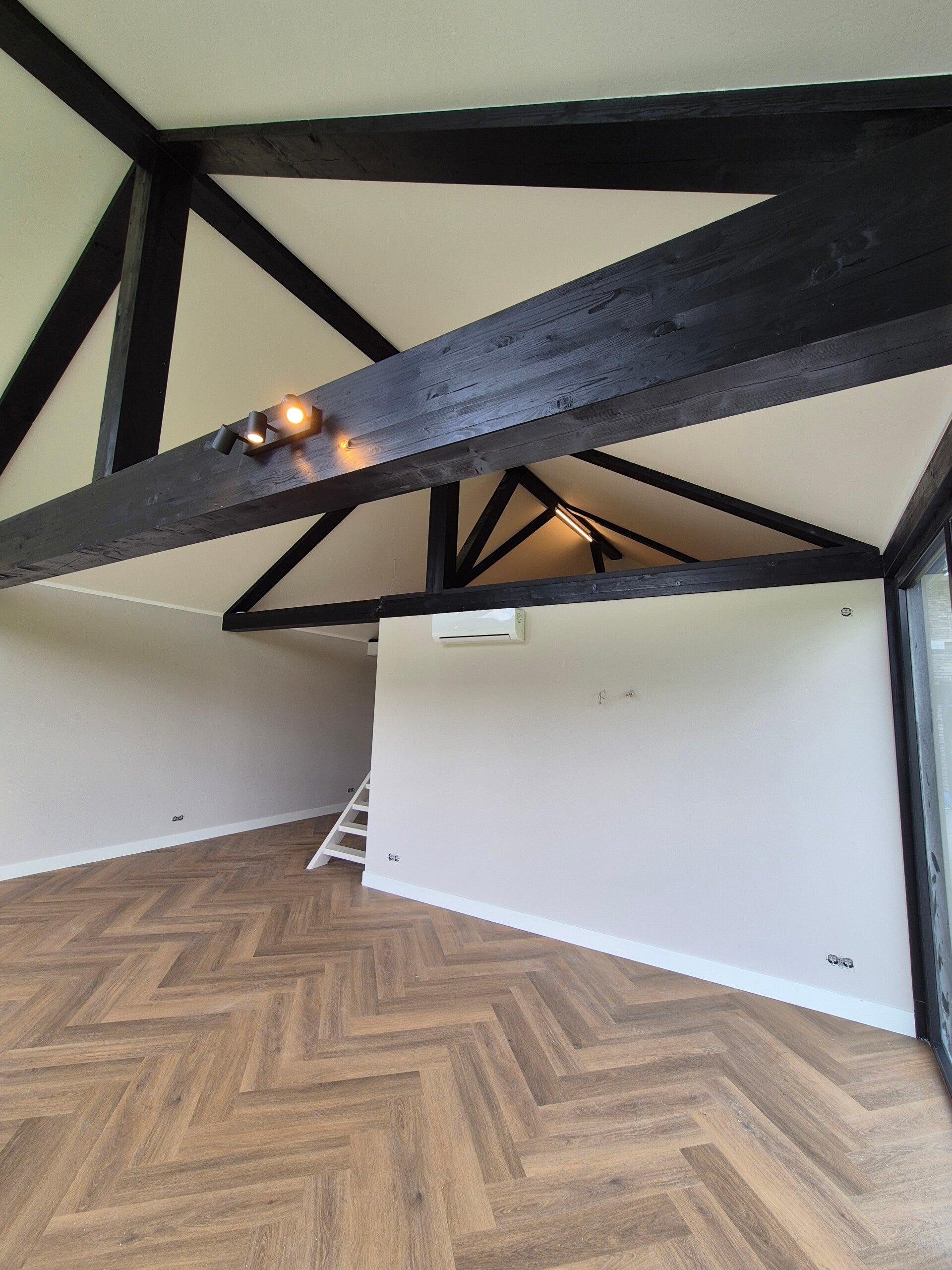 - Trap voorzien van nieuwe blanke lak en treden antislip in gefreesd